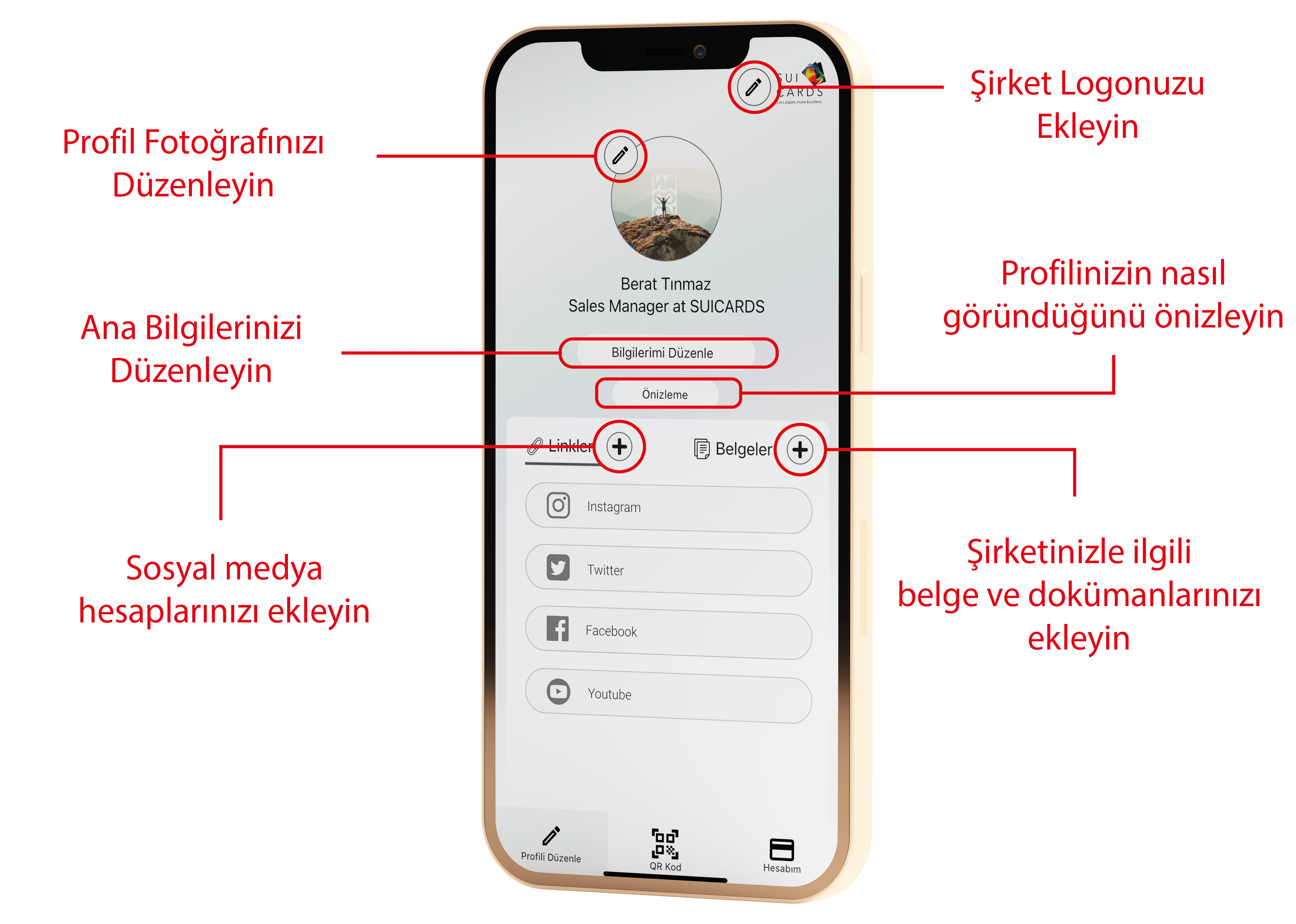 Profilinizi düzenledikten sonra artık QR kodunuzla tüm bilgilerinizi yeni tanıştığınız kişilerle paylaşabilirsiniz. Bilgilerinizi istediğiniz an istediğiniz şekilde değiştirin ve o an kullanmaya devam edin. Üstelik uygulamanızı dilerseniz sizin için tasarlamış olduğumuz birbirinden güzel NFC kartlarla eşleştirin, bilgilerinizi kartınızla paylaşmaya devam edin. Hem de kendi kurumsal tasarımınızla birlikte!